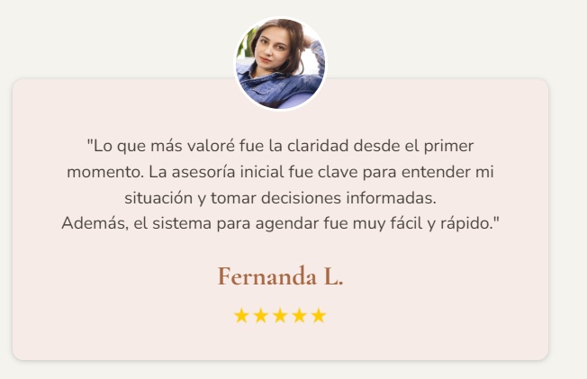 A través de mi asesoría, busco que comprendas con claridad cada paso del proceso legal que estás enfrentando y que, juntas, construyamos una estrategia jurídica que se adapte a tus necesidades particulares. Lo más importante es que te sientas acompañada, escuchada y que logremos recuperar tu tranquilidad.
