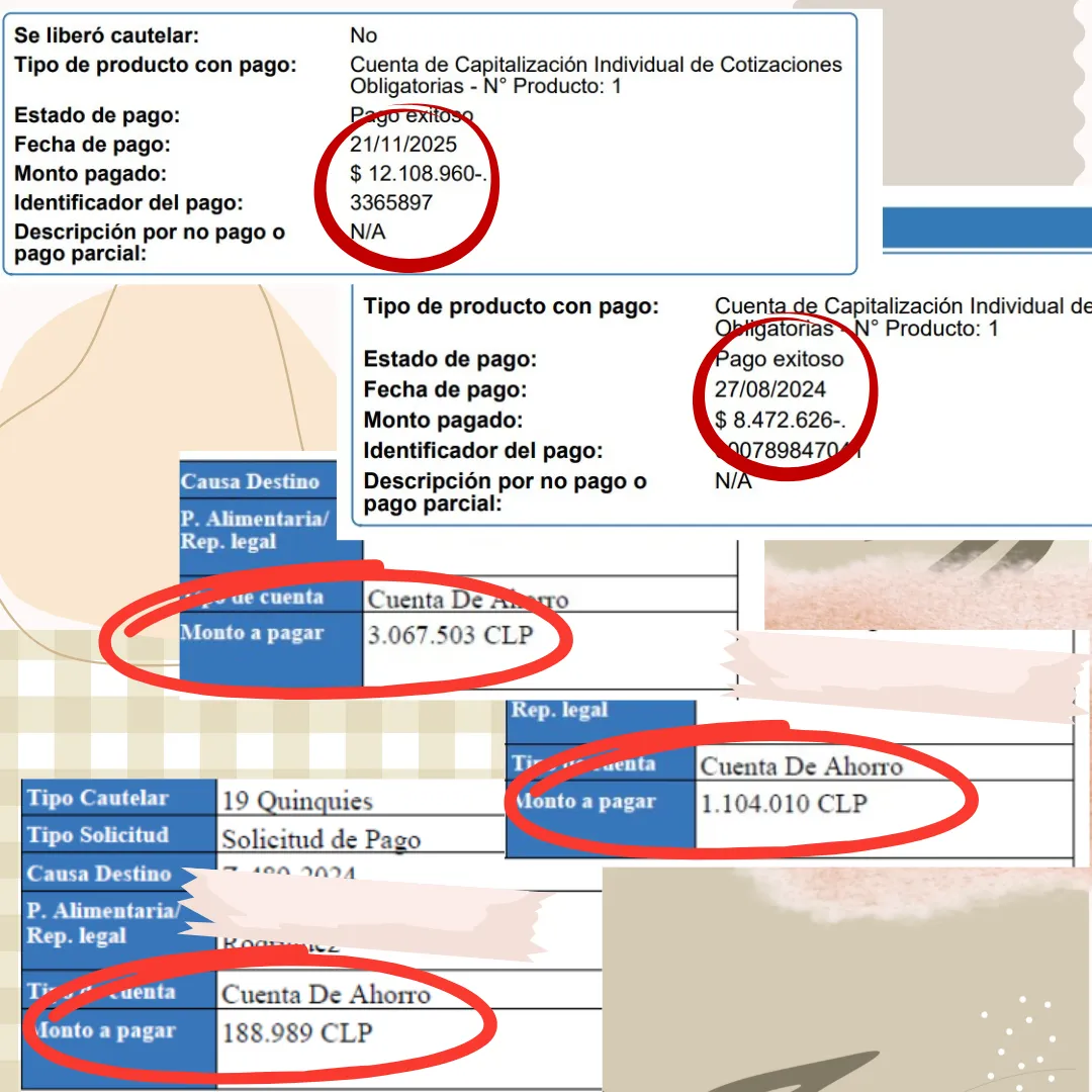 Estos son ejemplos reales de pagos obtenidos a través del procedimiento legal de cobro de pensión de alimentos desde la AFP del deudor.
